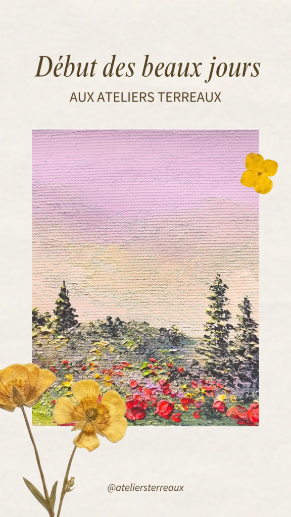 - Permettez vous un élan créatif pour vous ou à offrir ! Inscrivez-vous dès maintenant ou essayez nos ateliers avant inscription : une multitude de cours variés pour éveiller toutes vos passions. Pour plus d’informations, contactez-nous : 📧 contact@lesateliersterreaux.fr