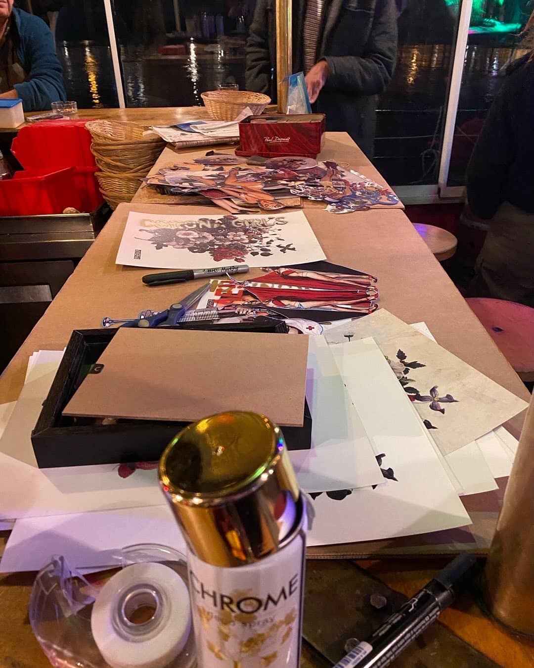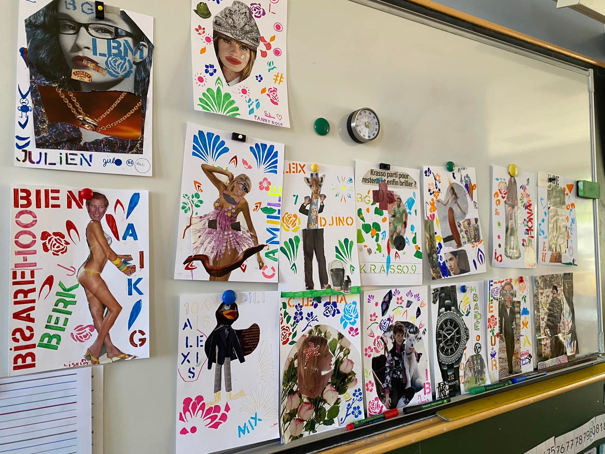 - Utilisation de matériaux variés : anciens journaux (revalorisation des matériaux anciens), magazines (apportés par les participants ou fournis), ciseaux, colle, pochoirs divers fournis